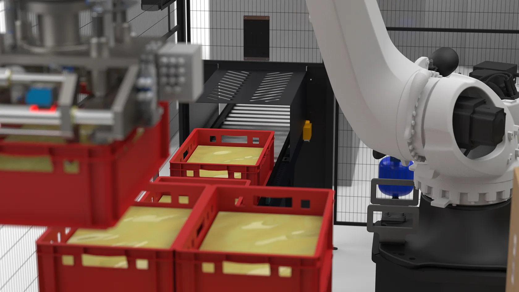Bei diesem Projekt wurde die Palettierung (sowie Umpalettierung) von mit Kartoffelprodukten gefüllten Kisten und Kartons realisiert.