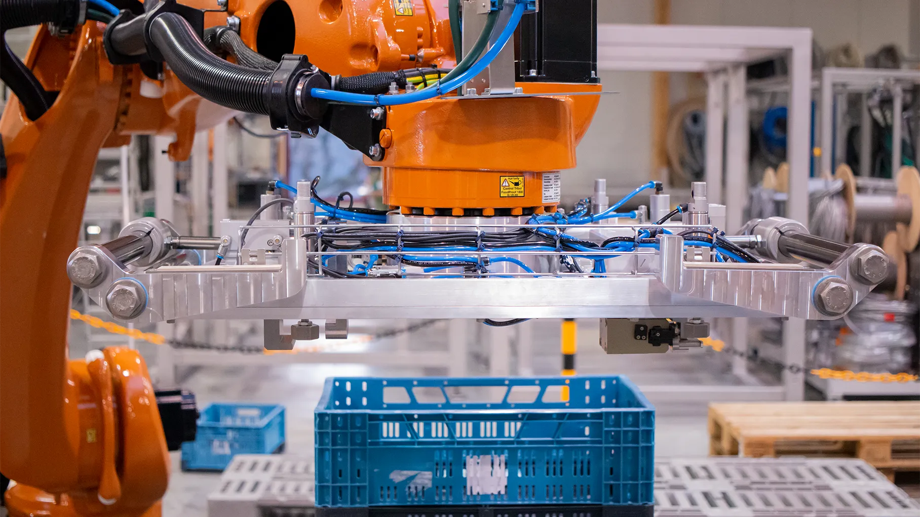 Bei diesem Projekt wurde ein Retrofitting eines Palettierroboters für K24-Kisten realisiert.
