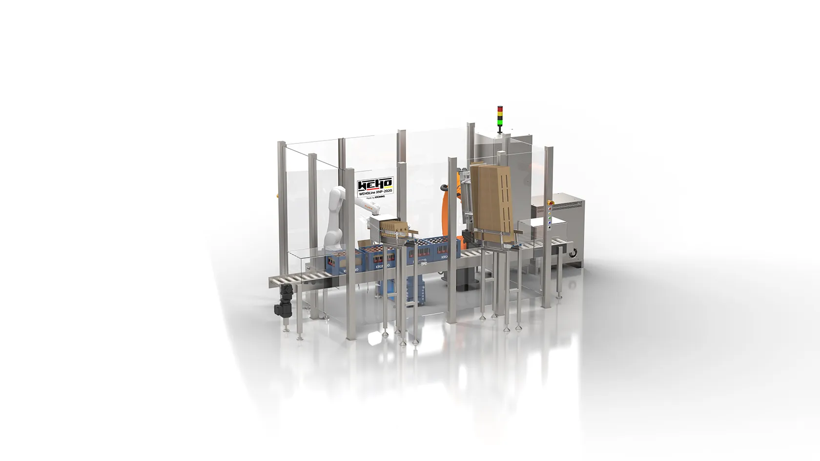 Die kleinste Ausbaustufe des Systems bietet vor allem für kleine Produktionsvolumen den perfekten Einstieg in die Verpackungsautomatisierung mit WEHO®Pack.