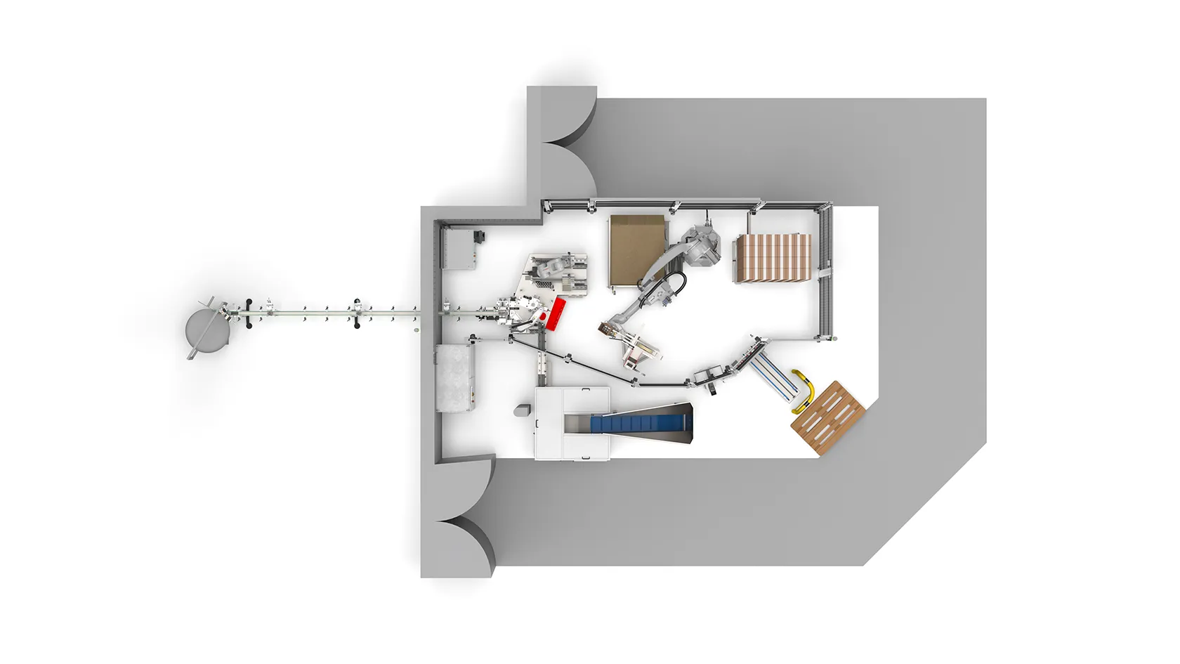 | Challenges | Limited space Complex tool for cartoning, palletizing and carton erection |
