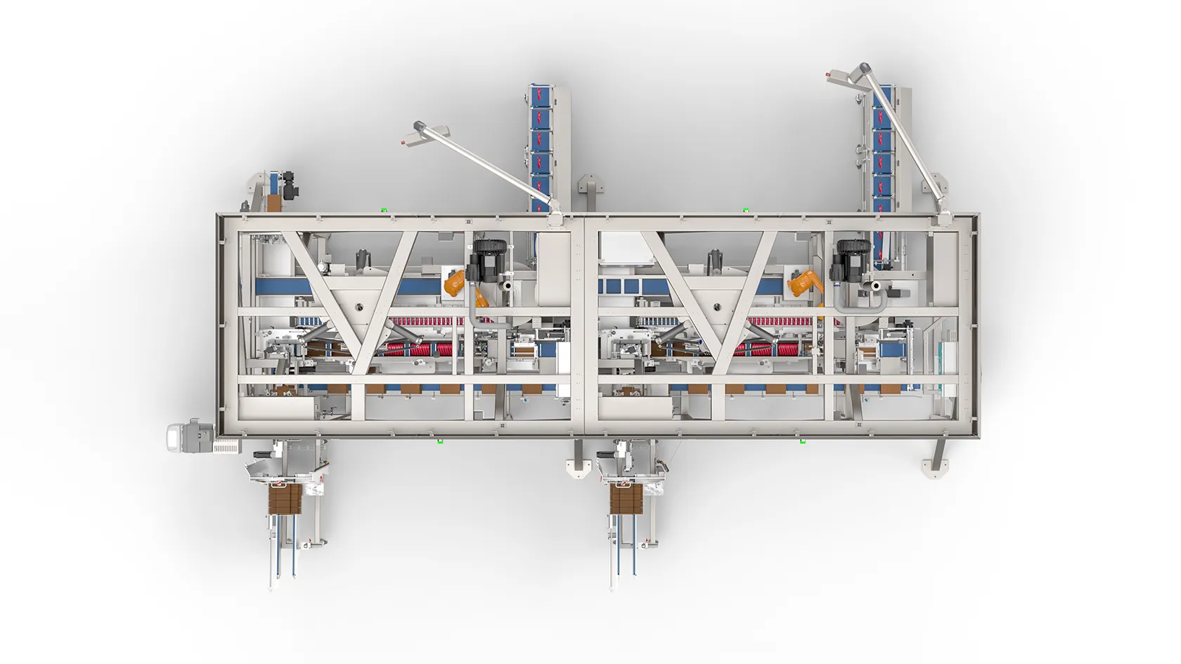 The picker line consists of two of these systems that can operate independently of each other. This means that one system can pack boxes while the other fills the multipacker.