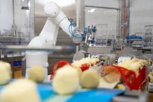 The food industry places particularly high demands on the hygienic design of production facilities. The processing of unpackaged food requires special materials, well thought-out design principles, and flexible solutions. Below, we explain three key aspects that must be taken into account when developing machines for this sensitive area.